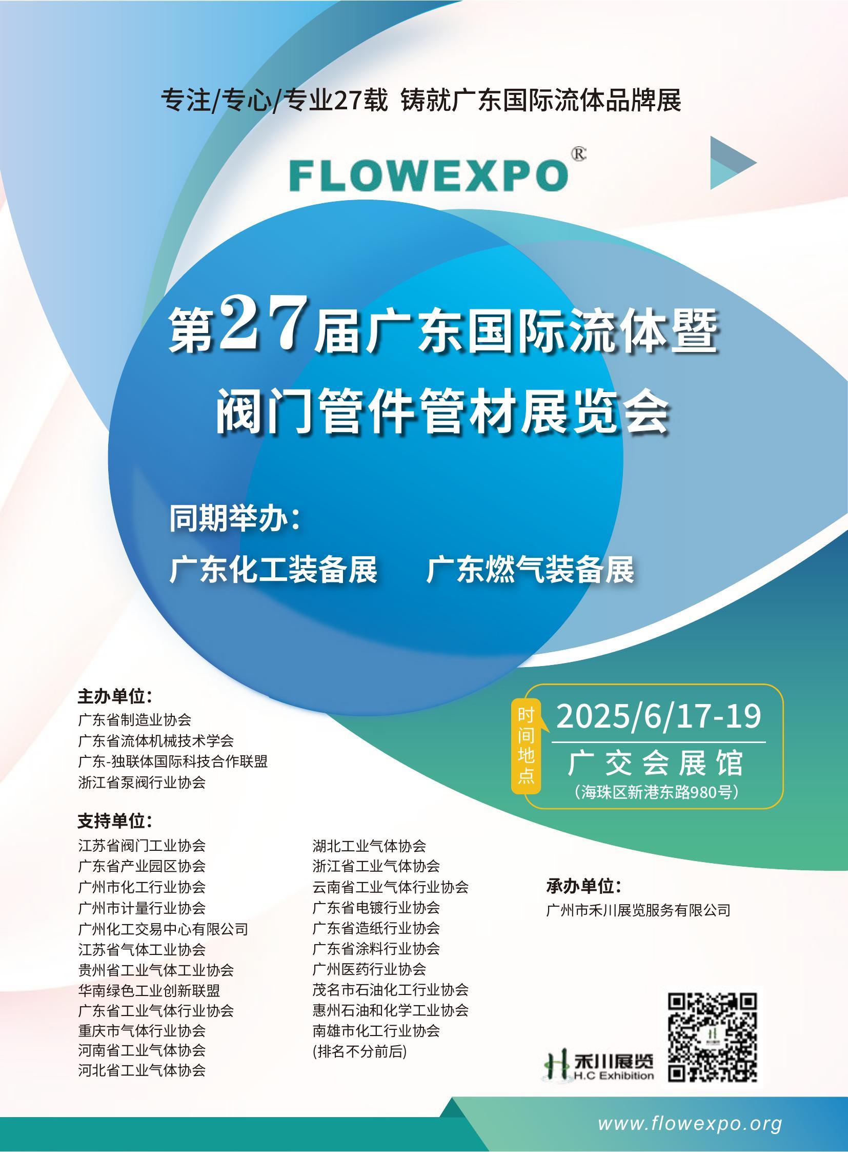 2025年第27届广东国际流体暨阀门管件管材展览会将于6月17-19日在广交会展馆举办。