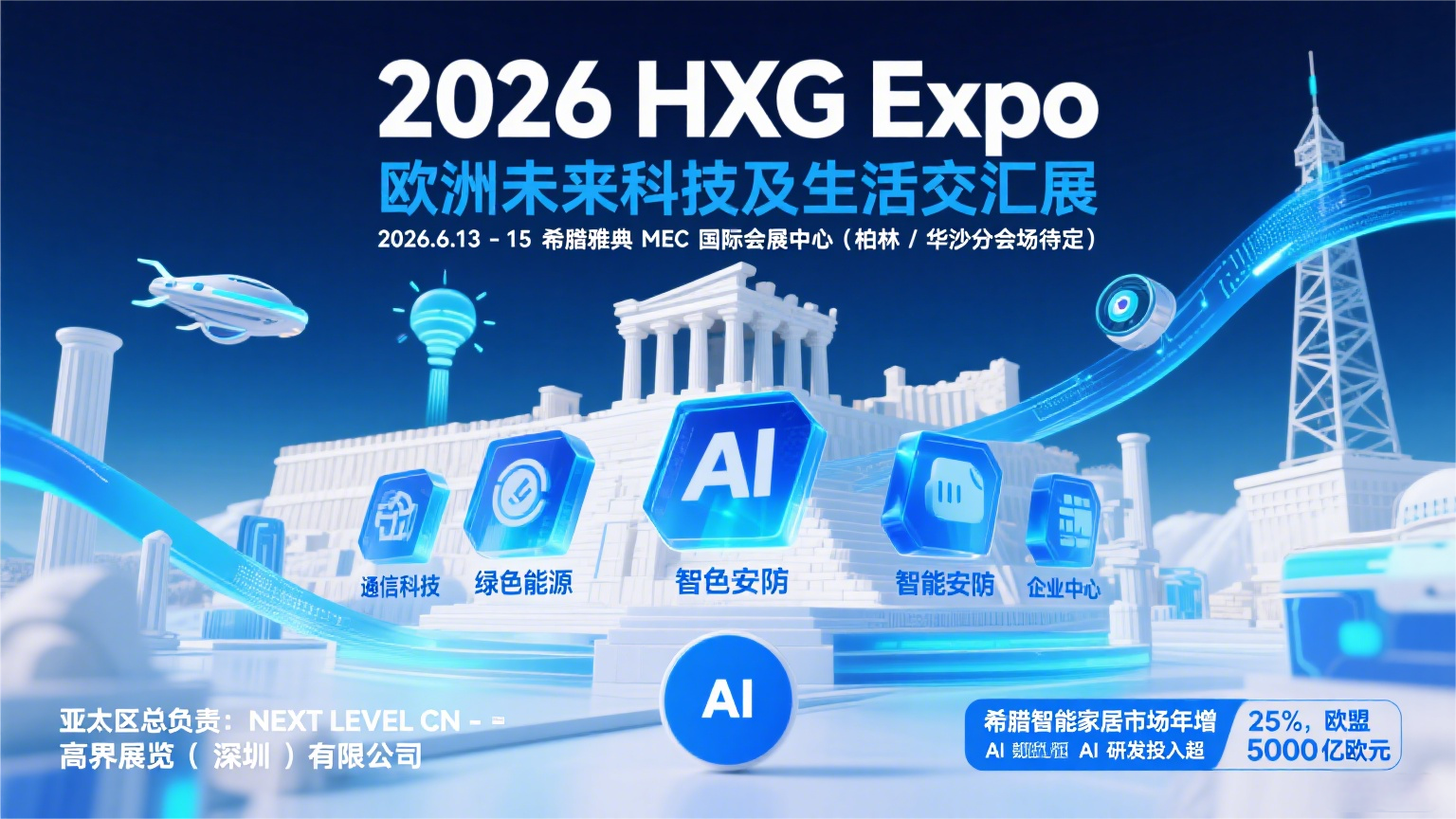 展会名称:欧洲希腊智能科技展 展会时间:2026年6月13-15日 展会地点:希腊雅典-佩尼亚MEC国际会展中心 举办周期:一年一次
