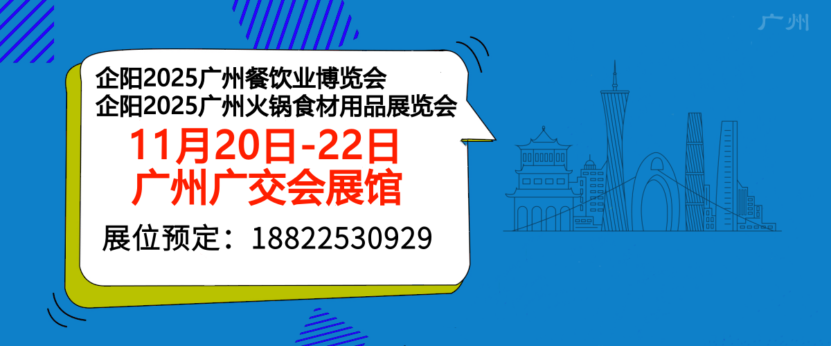 展会名称: 企阳・2025华南(广州)餐饮业博览会 企阳・2025华南(广州)火锅食材用品展览会 展览时间: 2025年11月20日-22日 展会地点: 广州·广交会展馆 主办单位:
