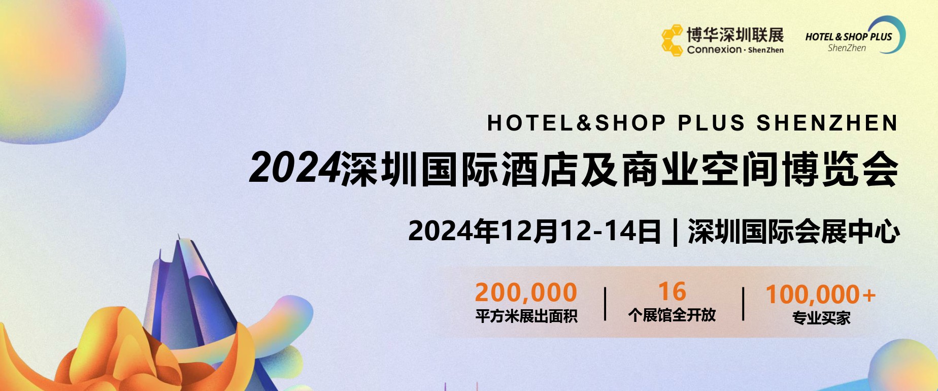 2024深圳国际酒店及商业空间博览会 博华深圳联展|Hotel & Shop Plus酒店商业空间展 时间:2024年12月12-14日 地点:深圳国际会展中心(广东省深圳市宝安区展城路1号) 参展详情请联系:周霞 136 5178 6569(兼V)