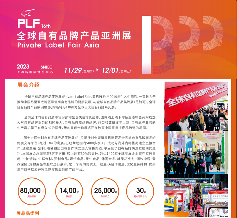 PLF和PLSC十多年来,致力于推动国内自有品牌行业的发展,几乎是从零开始,一边和零售商讨论如何做自有品牌;一边帮助供应商了解和适应这种新的合作模式,一直发展到现在行业初具规模;自从2018年开始,国内已有很多展览公司跟风做自有品牌。因为受到行业专业性局限,几乎没有成功的,当时我们的态度也是欢迎大家一起来共同推动PB在国内的发展;