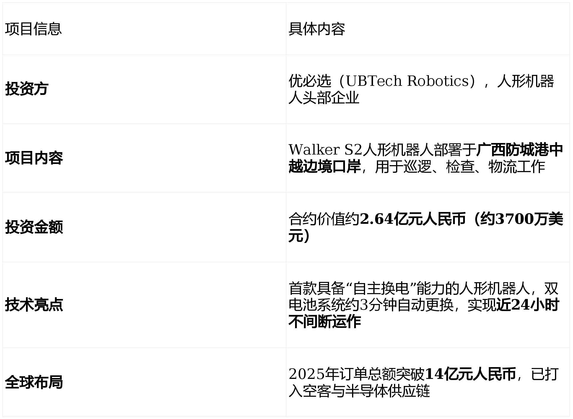 投资信号:虽然部署地点在中国境内,但直接服务于中越边境口岸,是中国机器人技术在“越南场景”的示范应用。未来可能延伸至越南境内边境/口岸场景。