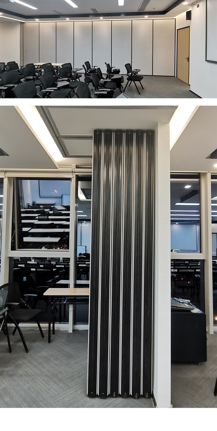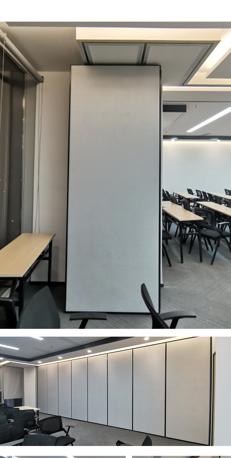 2、活动隔墙板由高硬度铝合金为框架,高强度的钢制骨架、橡胶、隔音棉及饰面板组成。