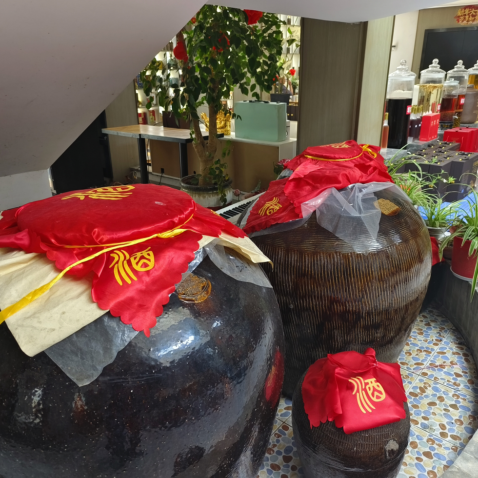 采访时,记者一行在周友智的引领下,参观了地窖发酵间。推进发酵车间门,冷气瘦瘦,浓浓的酒糟香扑鼻而来。周友智一边介绍说,空气凉,是因为恒温一直保持在25度左右,一边用手指着排列整齐的发酵大缸,介绍发酵的配比情况。他说,一般按100斤高粱,100斤小麦,5斤白茶,3斤白茶叶制作的红茶,加上天目湖的水,进行配比拌和发酵。当他掀开一个大缸的铺盖时,展现眼前的是金橙橙的酒糟,煞是好看。周友智用手捧起酒糟,并合力捏紧,只见醇香的白茶酒就溢了出来,变成一条线,让我们鼻翼一嗅,真的沁人心脾,很是陶醉。周友智还给我们介绍蒸馏取酒情况。然后,带我们坐小货电梯,到上面的储藏间。同样,储藏间排列着整齐的储酒大缸。储藏间的墙面,排列满满“私人定制”的白茶酒罐。酒罐个头明显比储酒大缸小,但也足有大几十斤。酒罐正面贴着封条,写着定制单位或定制个人姓名以及定制的时间。有的是前年的,有的是去年的,还有今年的。因为储藏间阴冷,这些“私人订制”的储藏酒罐斑斑驳驳。周友智开玩笑说,这样斑驳有历史感的酒罐只能在贵州溶洞酒窖里才能看得到。